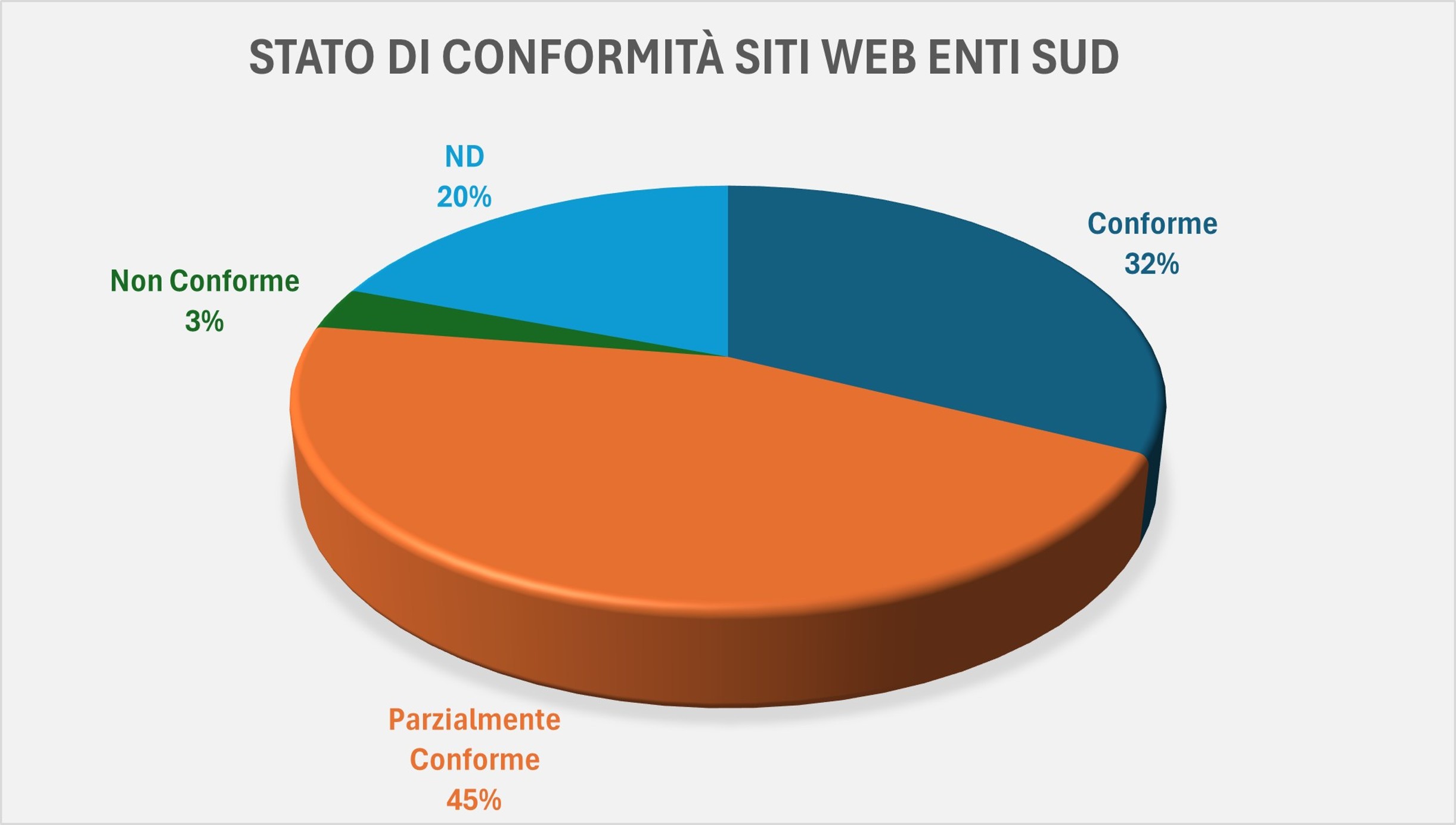 Lo stato di conformità alla normativa è determinato dal rispetto dei requisiti previsti dalle "Linee Guida per l'accessibilità dei contenuti Web (WCAG) 2.1", e si suddivide in tre categorie: